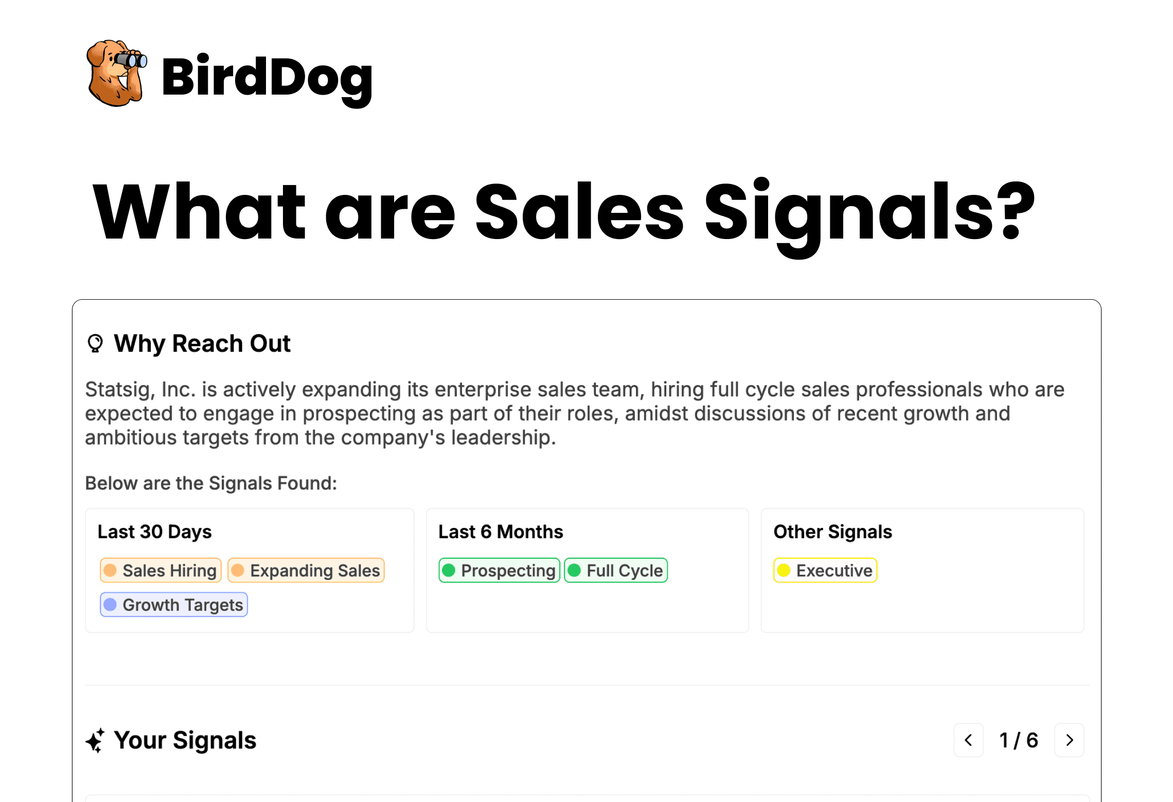 So, if you want to learn more about how BirdDog can help you enrich your entire sales process with Signals, click here to book a meeting with a member of our team.